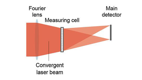 35 years ago, FRITSCH was the first company in the industry to bring a revolutionary alternative to the conventional design onto the market in the form of laser diffraction in a convergent laser beam: By positioning the Fourier lens in front of the measuring cell, a convergent laser beam passes through the measuring cell. The scattered light is focused directly on the detector without additional optical elements. This design is now in widespread use and can be designed so that a main detector can be used to capture small scattering angles for measuring larger particles. For the large scattering angles of the small particles, a suitable detector system then needs to be integrated for the sideward and backward scattering.
