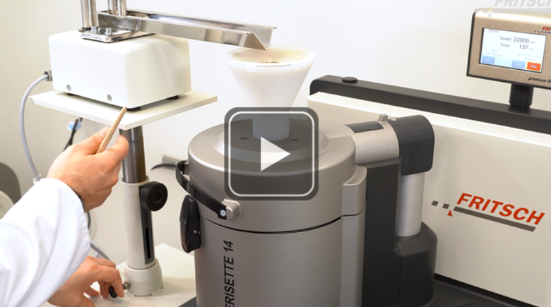 When processing a sample of green tea leaves, two FRITSCH laboratory instruments complement each other perfectly: the Variable Speed Rotor Mill PULVERISETTE 14 premium line is combined with the Vibratory Feeder LABORETTE 24. Directly controlled by and precisely matched to the mill, the Vibratory Feeder LABORETTE 24 always ensures the correct feed rate – ideal for the slow feeding of small or smallest material quantities or for grinding larger quantities.