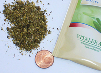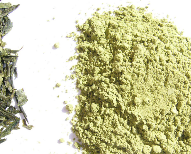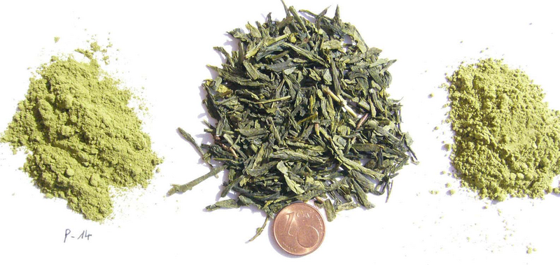 Green tea comminuted with the Variable Speed Rotor Mill PULVERISETTE 14 using a 0.08 mm sieve