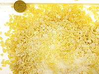 This crude rubber can only be comminuted manually with cutting tools with great effort. An embrittlement with liquid nitrogen enables the comminution of small amounts with the Universal Cutting Mill PULVERISETTE 19 large. Much more elegant and also very suitable for larger amounts are the embrittlement and the grinding of the material along with dry ice with the PULVERISETTE 19 large. During the test the sieve with 8 mm square perforation was used. The resulting material has a uniform grain size. An additional comminution to an even smaller degree would be possible.