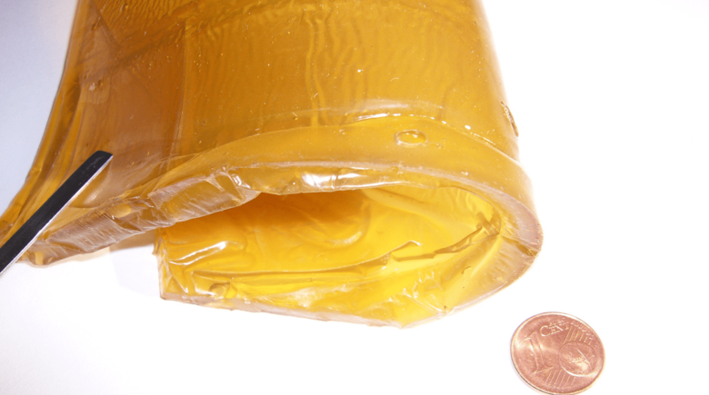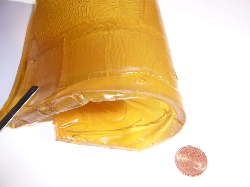 This shaped and marketable product is extremely elastic; it is considered viscoelastic. The differences in the production of this commercial product require an analytic evaluation of the crude materials, before they can be used for further processing.