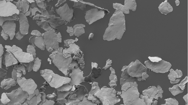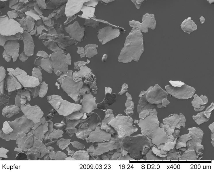 This can be easily discerned in the following images which were obtained with an electron microscope. With a platelet thickness of ~2 µm. the measurement in longitudinal respectively cross direction is approximately 20 - 40 µm.