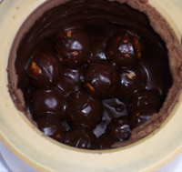 Here you must work with higher temperatures. For this we would recommend a zirconium oxide mortar bowl and pestle. The mortar bowl and also the pestle are to be warmed inside the heating cabinet to 50 °C. The retained energy is sufficient to produce in the 10 minute process period a homogenous mass capable of flowing. Then distinguished palates decide in regards to the quality of the supplied cocoa beans the further use.